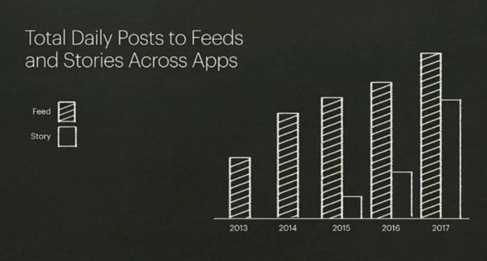 得益于以上因素,2018 年 F8 大会上官方透露,Facebook 主应用和 Instagram 上Stories 分享量的增长速度远超信息流。他们预测,到 2019 年,Stories 分享和观看量绝对规模会超过信息流本身。