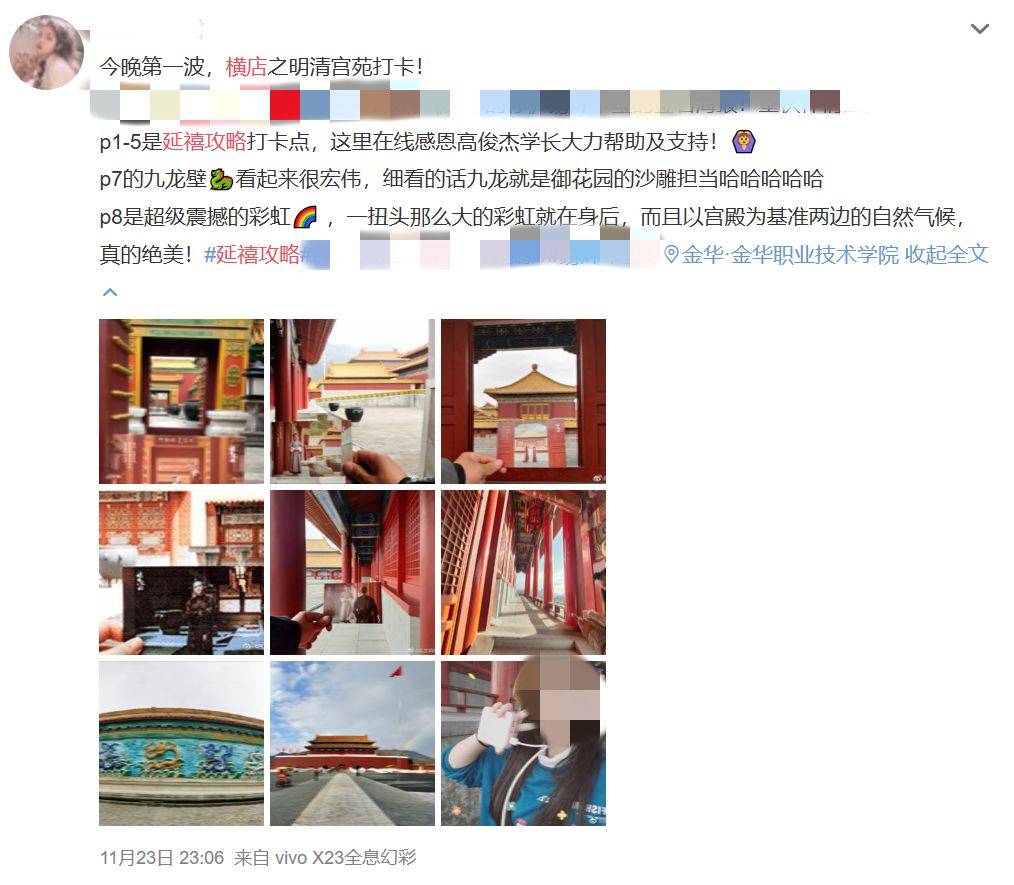 微博网友晒出《延禧攻略》取景地打卡图,该剧曾在横店取景拍摄