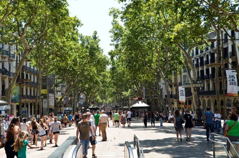 巴塞罗那城市核心区的步行街 La Rambla 从哥伦布纪念碑一直延伸至老城区加泰罗尼亚广场,四季游人如织,同时也是巴塞罗那市民最常去的商业休闲场所。La Rambla 的做法看似与商业利益最大化的原则不同,整条宽敞的街道被绿荫覆盖,牺牲了一部分店面展示性,却保留了环境的清幽和放松。