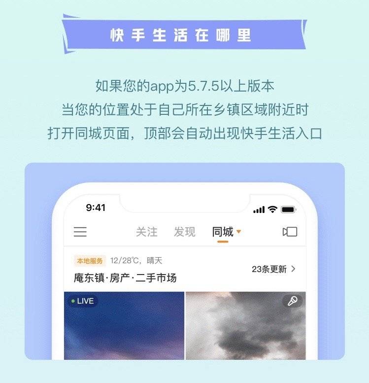 “关注”为快手带来了繁荣的直播生态,“同城”是快手另一个高价值核武器,不仅丰富了内容渠道,而且还是连接线下商业的超级入口,尤其是在下沉市场的小城镇,位置筛选后的精准流量,先天具备营销价值,无论直播卖货,或者是本地生活服务,同城区域内的需求量都很大。