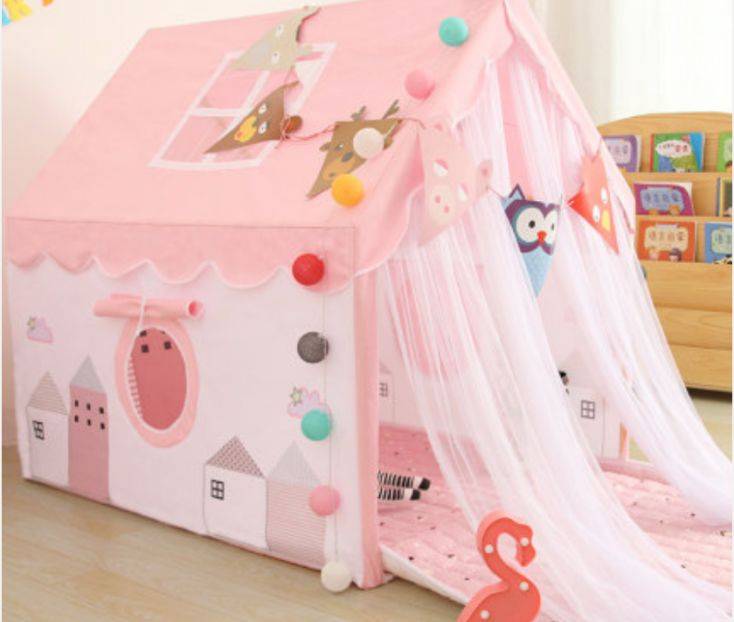 三天后,她在淘宝上给自己买了一个学名为“儿童帐篷室内公主ins风玩具屋”的粉色小房子——布料上画着一些软萌的卡通图案,还有一个圆圆的小窗。“屋顶”上有纱帐垂下来,像软绵绵的云絮。