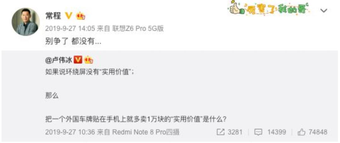 其实细观常程的大嘴之路,他的策略十分清晰:蹭热度。甚至外界都传言,是不是常程在为联想的宣发部门节省经费。常程的一波“碰瓷”,明显的炒上了联想新机的热度。
