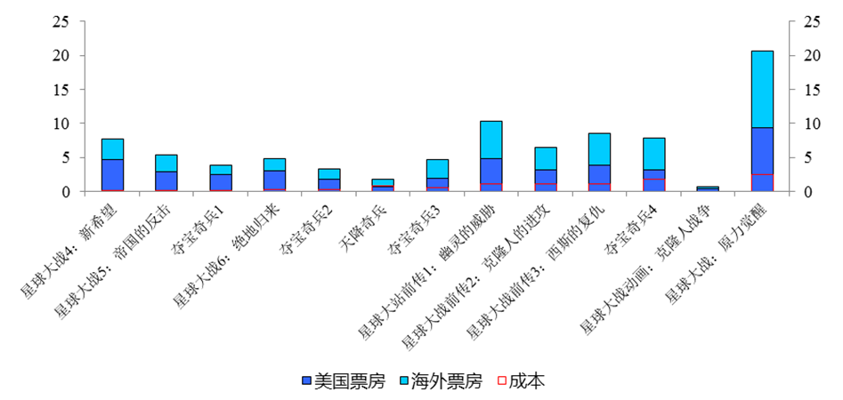 1977-2012年,星战系列诞生35年的制作总投入约4亿美元,而全球票房收入达到44亿美元,衍生品收入超过200亿美元。