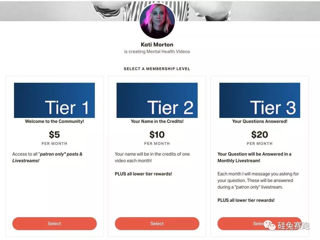 创造者们可以开设不同的粉丝等级,粉丝们根据会员制付费,从而获得不一样的内容。