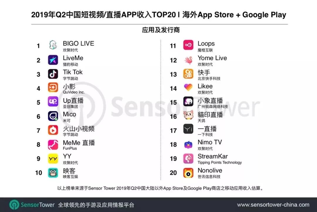 而在海外,熟人社交领域被Facebook、WhatsApp瓜分。出海的社交产品集中在陌生人领域,以短视频、直播等方式提高用户粘性。以欢聚时代为代表,其矩阵内的多款产品成为海外榜单常客。