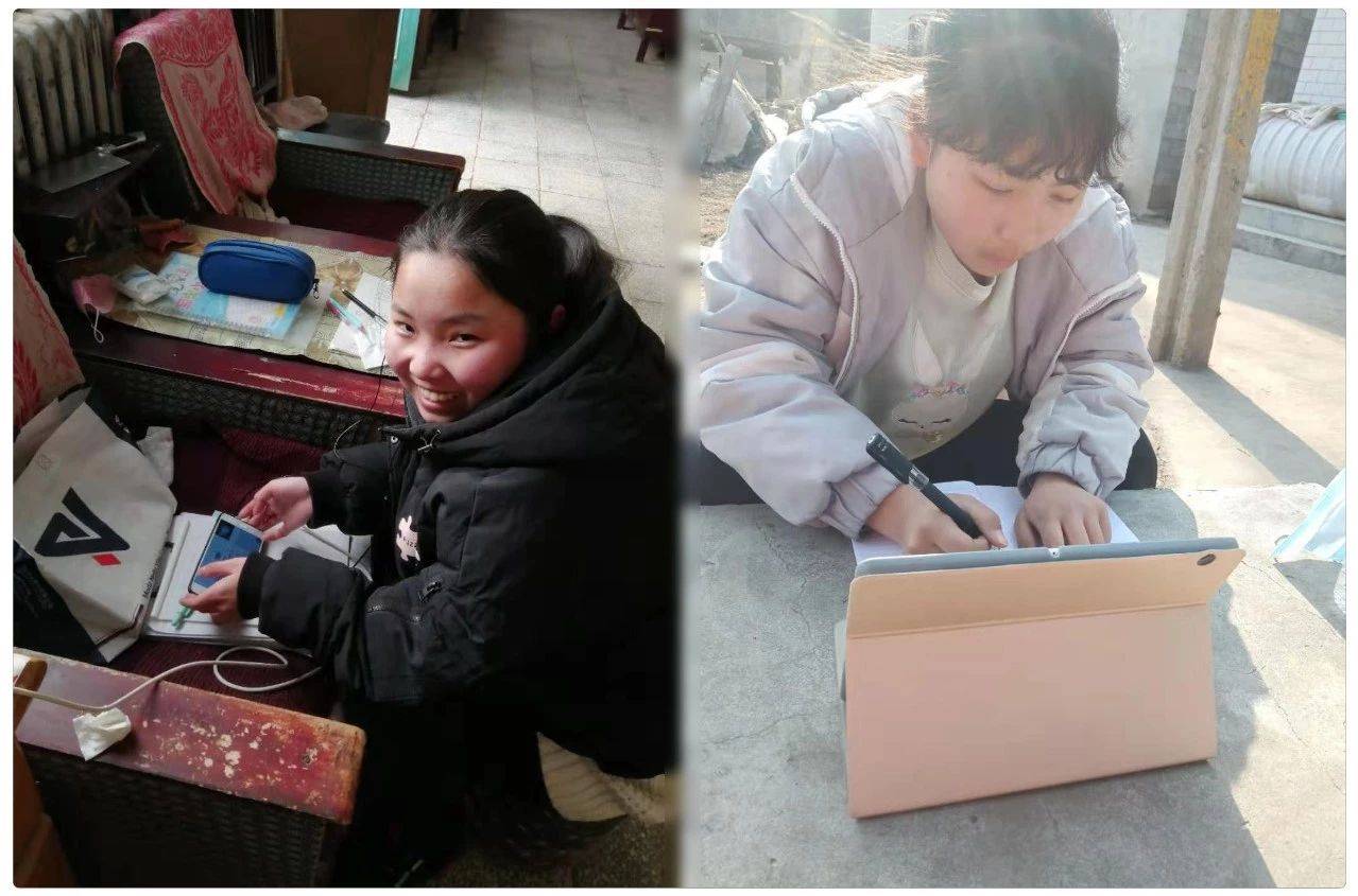 克服各种困难上网课的学生们