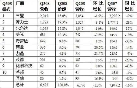 到2007年底,DRAM的价格跌到仅为2006年同期的四分之一,在金融危机爆发的2008年,DRAM价格更是一路狂泄,DRAM颗粒价格从2.25美元暴跌至0.31美元,