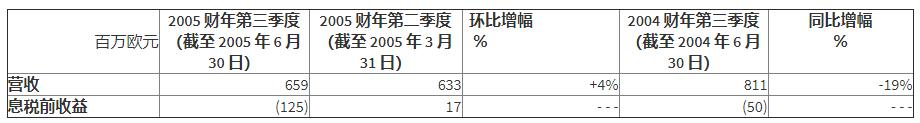 2005年7月26日,英飞凌发布2005年第三季度财务报告,报告显示,英飞凌的内存部门,同比营收跌幅达到了19%。