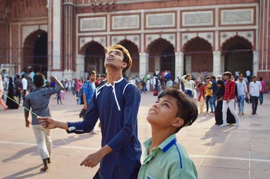 初来印度时的“旅游照”,看年轻人在广场上放风筝