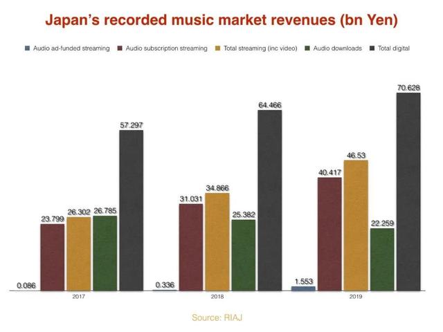 行至2018年,日本仍然是仅次于美国的全球第二大录制音乐市场,为艺术家和唱片公司创造了28.7亿美元的收入,是排名第三的英国市场的两倍。