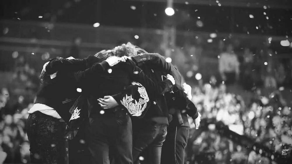 “我们也曾苦恼过要不要解散......想对爱着我们的人说声谢谢。”轮到金硕珍发言时,一旁的金泰亨哭地弯下腰,不能自已。