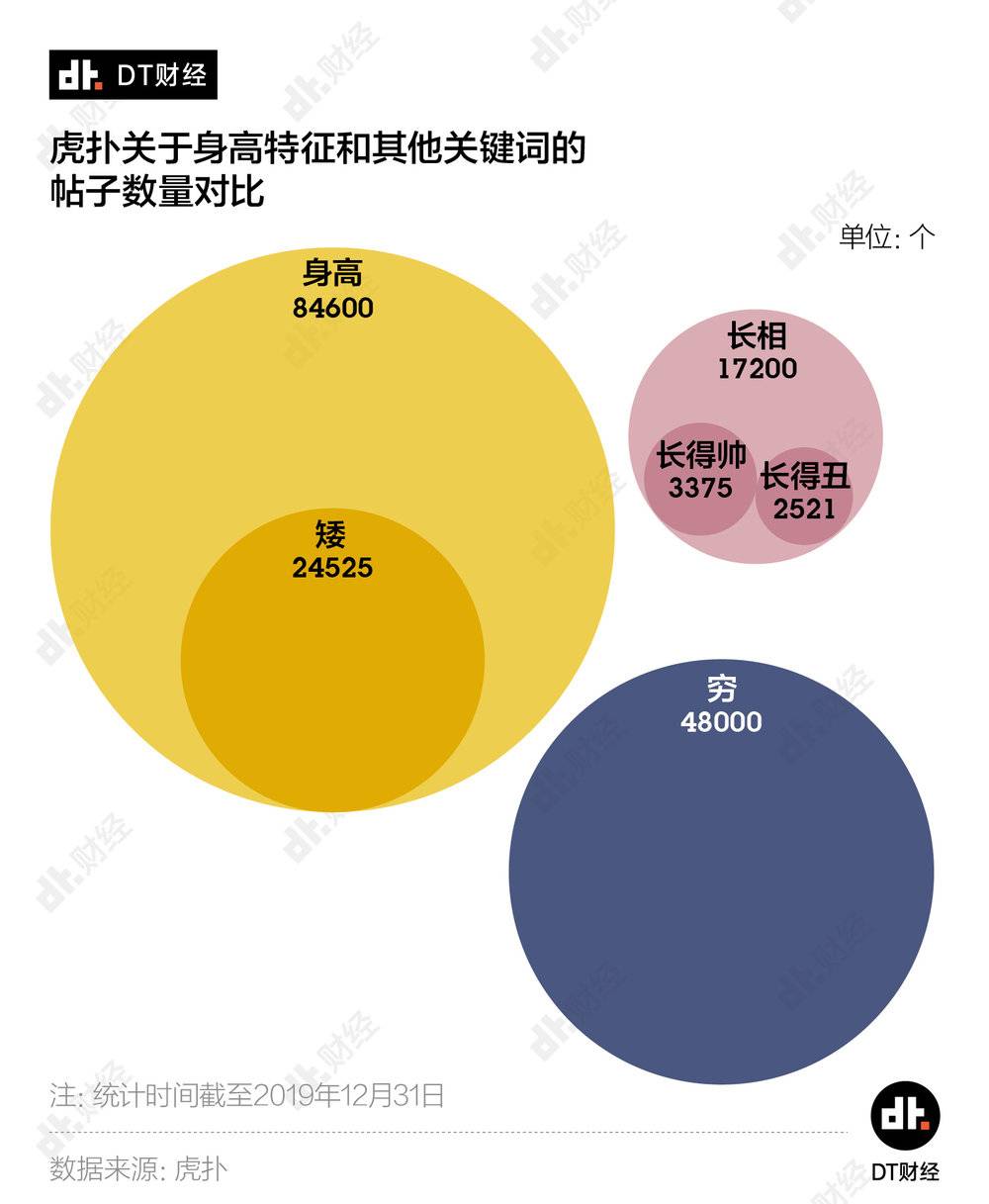 而虎扑上的直男JR们(家人的缩写,虎扑用户的自称)对于身高的在意,从他们在过去一年中发布的超过8.4万条与身高有关的帖子中便可见一斑。