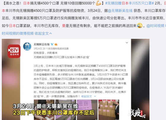 还有个朋友实拍的视频中,当一名护士收到新的口罩、防护服的物资时,一边大哭,一边深深鞠了一躬,送东西的司机大哥连忙安慰她:“没事没事,一会还有更多的。”
