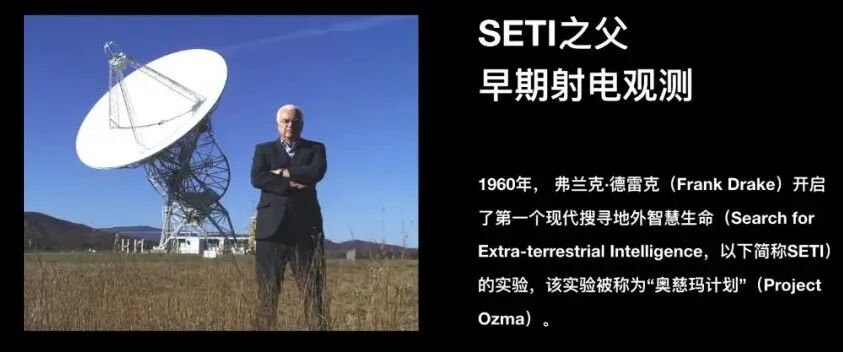 现在我们对宇宙的认识已经非常深入了,宇宙中的天体本身发出的信号宽度最窄是500赫兹,所以我们需要寻找那些小于500赫兹宽度的这种窄带信号,它才有可能是非自然的人为信号。 其实地外文明的观测从20世纪60年代已经开始了,当时德雷克就开启了全世界第一个搜寻地外文明的计划——奥慈玛计划。