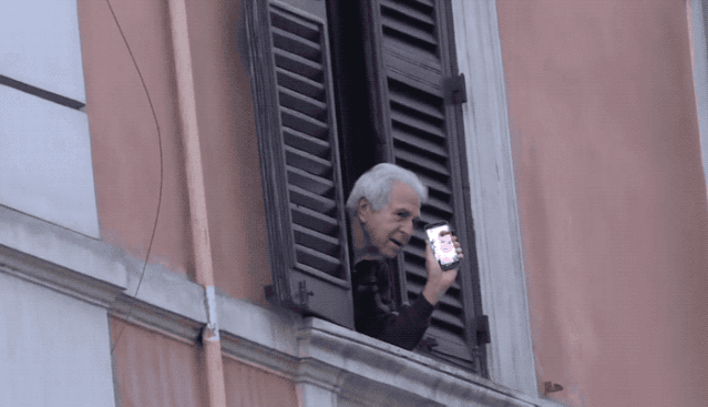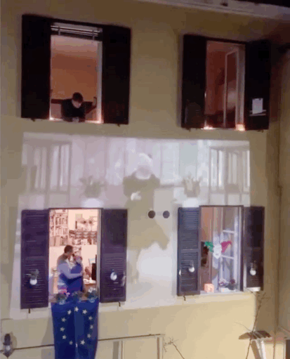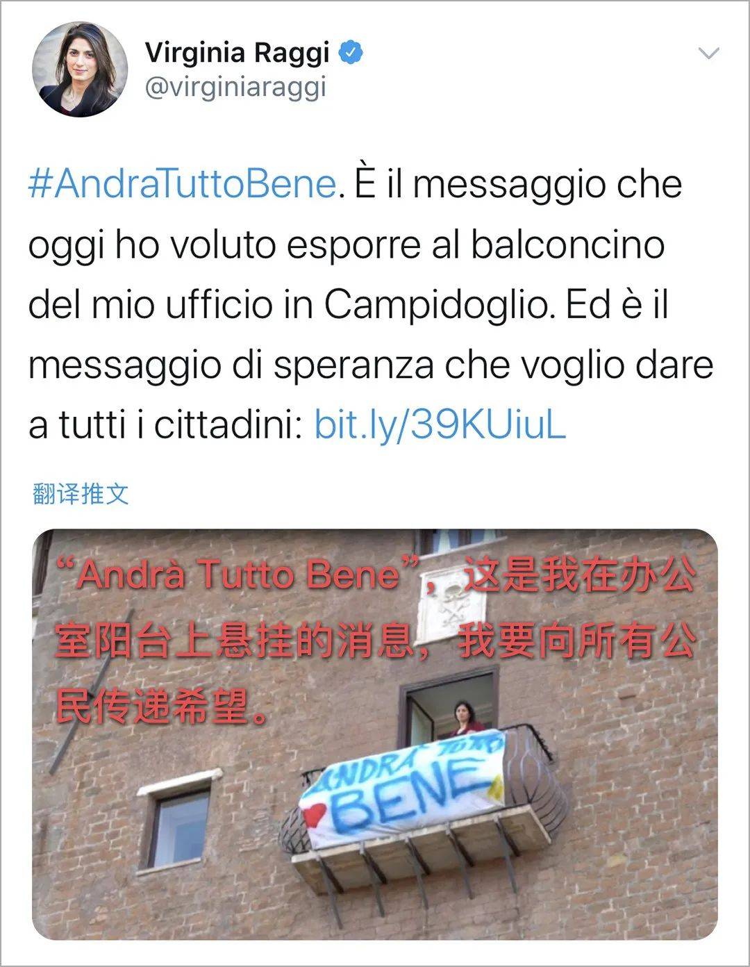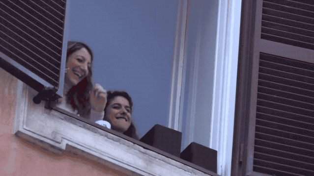 在封城的第四天,罗马市长 Virginia Raggi 走出办公室的阳台,呼吁罗马市民在每天晚上 6 点钟打开窗户,走到阳台上唱一首歌,用乐观来传递希望: