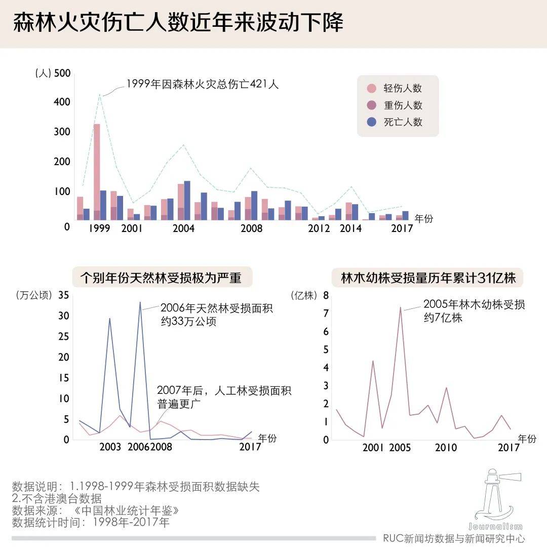 RUC新闻坊分析了1998年至2017年(截至发稿发布的最新数据)的中国林业统计年鉴中的历年森林火灾数据,以下这些数据发现值得我们了解。