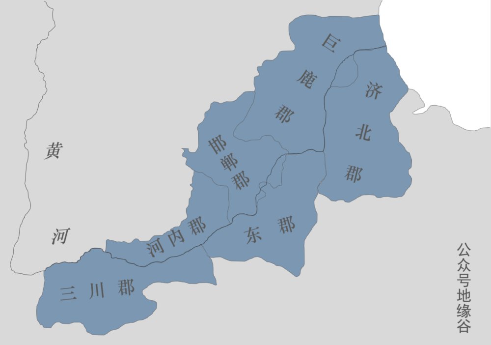 依此为界,大河南岸自西至东为三川郡、东郡与济北郡,北岸则依次是河内、邯郸与巨鹿三郡,南北六郡以河为界,相互之间界限分明。