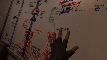 现实中的板书也能够投射到这个虚拟房间中: