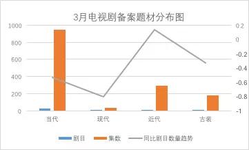 一个令人并不感到意外的消息是,3月备案项目中,古装剧数量仅达到4部、集数182,同比去年同期下降33%,环比上月减少20%。这也就意味着,近几个月来古装剧备案数量一直处于少数,且个位数已是常见趋势。