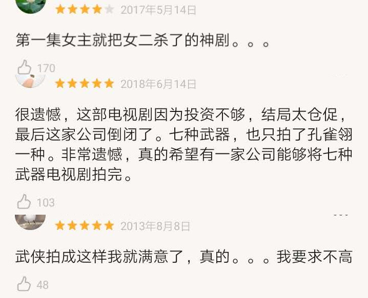 这批古装剧虽然造型雷人,分数却大多在7、8分,质量可以说颇受那一代观众的肯定。尽管已经播出了10余年,却依然有人呼唤它们的回归。