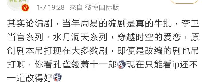 不可否认,在好编剧稀缺的当下,IP改编确实是一条可以考虑的捷径,哪怕是以原创见长的周易,也从来没有避讳过这种创作途径。
