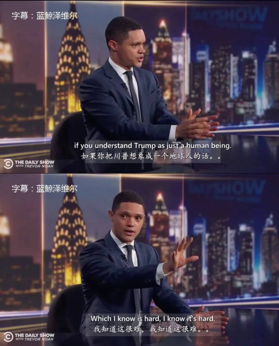 因为《每日秀》是个现场直播的节目,每次播广告的时候,主持人就必须跟观众聊聊天,那个时候理论上是不对外播放的。但崔娃很真实地聊了自己作为黑人在美国受到的一些不公正待遇,后来这些片段被节目组自己传上YouTube,特别火爆。