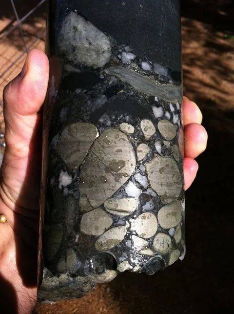 这些金色的卵石是河流从山里带出来的破碎黄铁矿,常年的冲刷磨圆了它的棱角[7~8]。在现代,黄铁矿(成分FeS2)在湿润和富氧的河道里,很快就会被氧化成黑色或者红色的产物,无法原模原样保存下来。但在27亿年前,地球的氧气含量极低,河水里根本没有氧气,这才使这类极为特殊的“黄铁矿卵石”穿越时光,为人们揭开那个遥远时代的一点面纱。