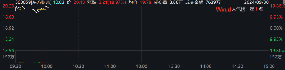 9月30日周一,A股疯牛!沪指盘初突破3200点,创年内新高,剑指3300点。35分钟两市成交额突破1万亿,刷新历史最快万亿纪录。沪深京三市半日成交额超1.67万亿元。A股多个话题屡占微博热搜。“A股疯牛”牢牢占据微博热搜第一。另有消息称,有网络写手股市赚到300万,实现财富自由,直接停更。