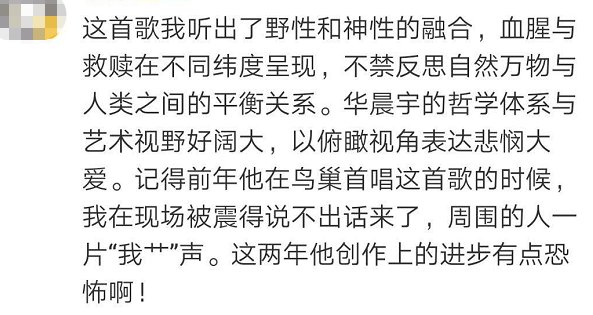 而且华晨宇的自身特质还踩中了两个buff:能唱高音,能炸场子,而这基本上就是现在歌坛最“有水平”的象征。