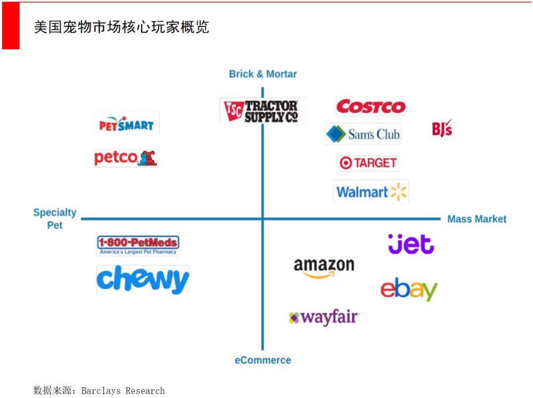 线下宠物店一直是购买主力,而电商的渗透率并不高,主要原因是人们在线下消费时,并不是单纯地购买某项商品或服务,也获得了值得信任的其他宠物主人的帮助,这是当下亚马逊等电商公司缺乏的。