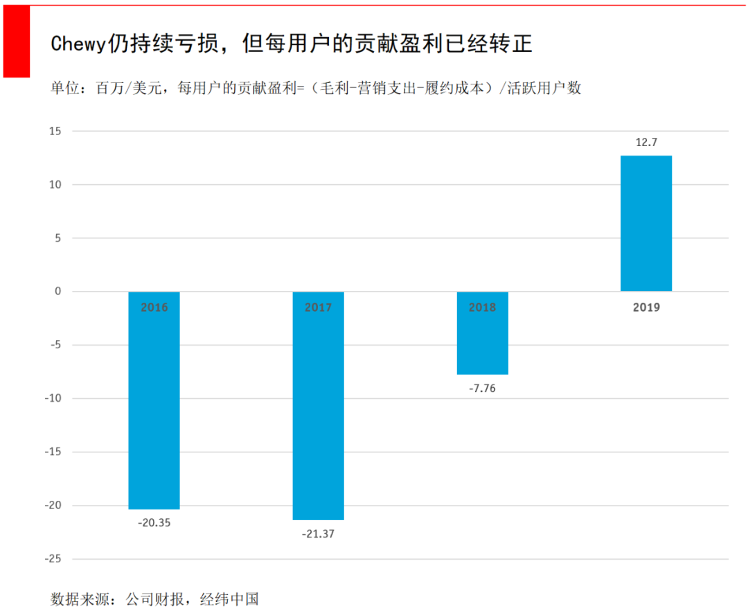 为了达到高标准的消费体验,Chewy也采取了类似亚马逊的自营模式,自建仓储配送中心,自己管理售后与退货,高前期投入使得Chewy至今未盈利。