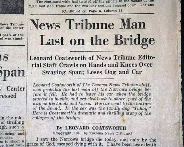 这时,记者里奥纳德·科茨沃斯(Leonard Coatsworth)正驾车驶过塔科马大桥。