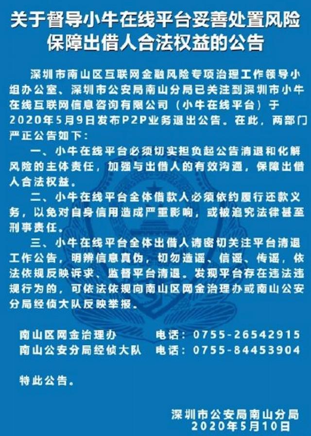 同时,小牛在线也于公告中承诺,在其“良性退出”期间,平台股东及高管不跑路、不失联、不撤资,与全体出借人共进退。