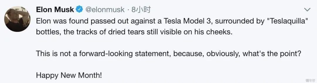 愚人节这天,马斯克甚至连发推特表露辛酸——“特斯拉破产了!尽管不遗余力地募集资金,甚至卖起了复活节彩蛋,但是我们仍很伤心地通知大家特斯拉已完全破产。”