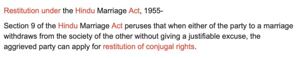 根据“婚内夫妻同居权”(Restitution of conjugal rights)的相关规定,维克拉姆有权要求妻子回家居住。