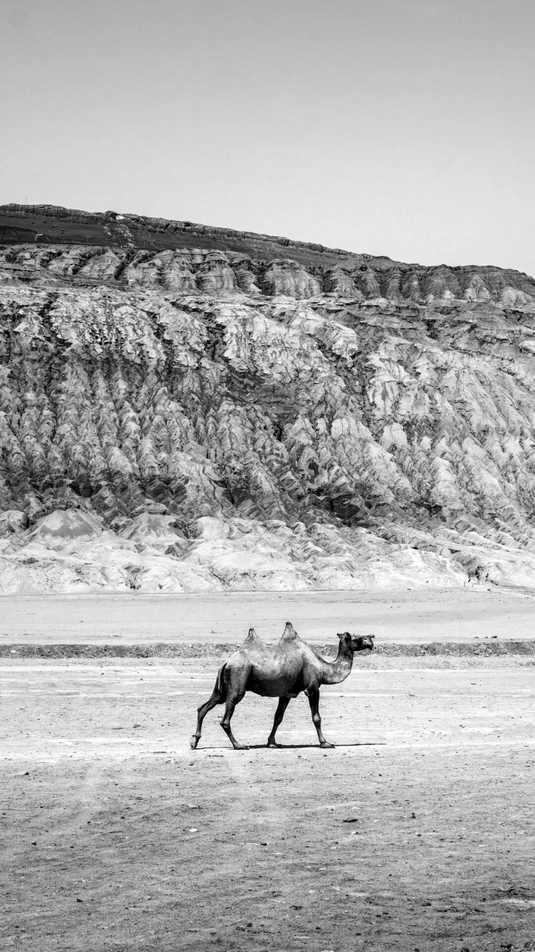 在火焰山拍摄到的一只骆驼,在如此高温之下,慢悠悠地走着,似乎早已习惯了高温的炙烤。