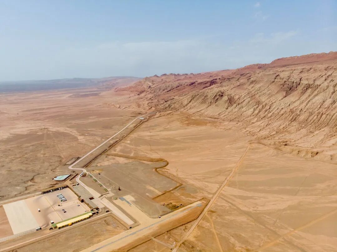 我用无人机俯拍了山体。我去了解过,火焰山是因为山体含矿所以呈红色,但身处其中时真的会让人感觉是高温将这一块地像烤肉那般煎成了红色。