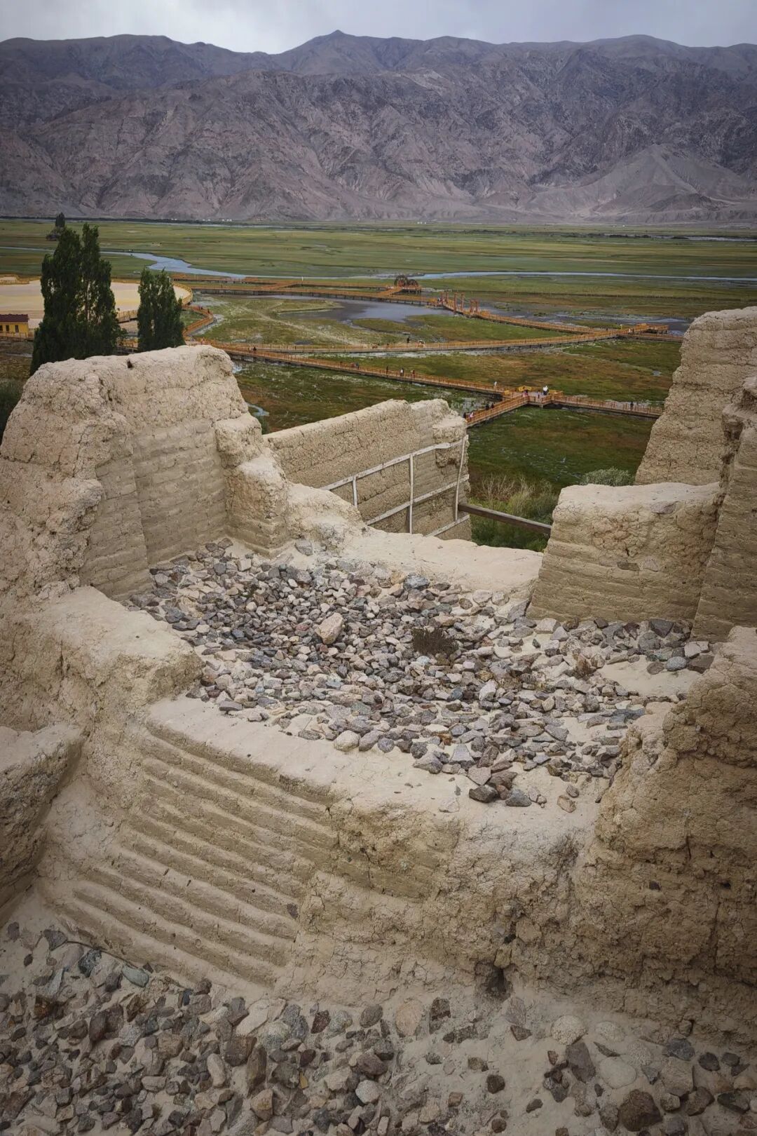 此处是新疆塔县石头城遗址。石头城的历史从西汉蒲犁国开始,经历中世纪朅盘陀国时期。玄奘印度东归曾在此停留讲经。唐朝高仙芝远征小勃律时在此设立葱岭守捉。清朝时期设为蒲犁厅。