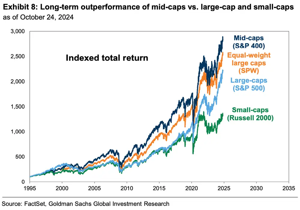 高盛策略师们建议道:“投资者应考虑配置我们认为当前形势有利于强劲未来表现的其他指数。尤其是上述两个指数(SPW和SP 400)。”