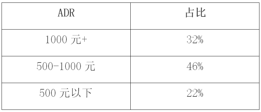 500-1000元价位酒店是主力,这个价位属于目前休闲度假主流酒店的价位,同时也是用户具有较高消费能力的区间价位。所以,并不是只有“非富即贵”的酒店才能入榜,特色鲜明而价格适中的酒店、民宿更受用户欢迎,这是从业者要格外注意的市场趋势。