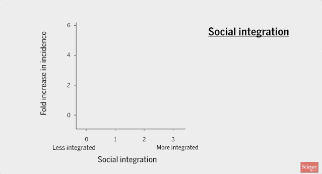 最早的调查研究估计,社会融合将生存率提高了30%-80%(比值介于1.3和1.8之间)。研究人员最新的研究分析包括了几个数量级以上的研究对象,但仍涵盖了这些原始值,根据测量方法和纳入标准,比值范围为1.19至1.91。