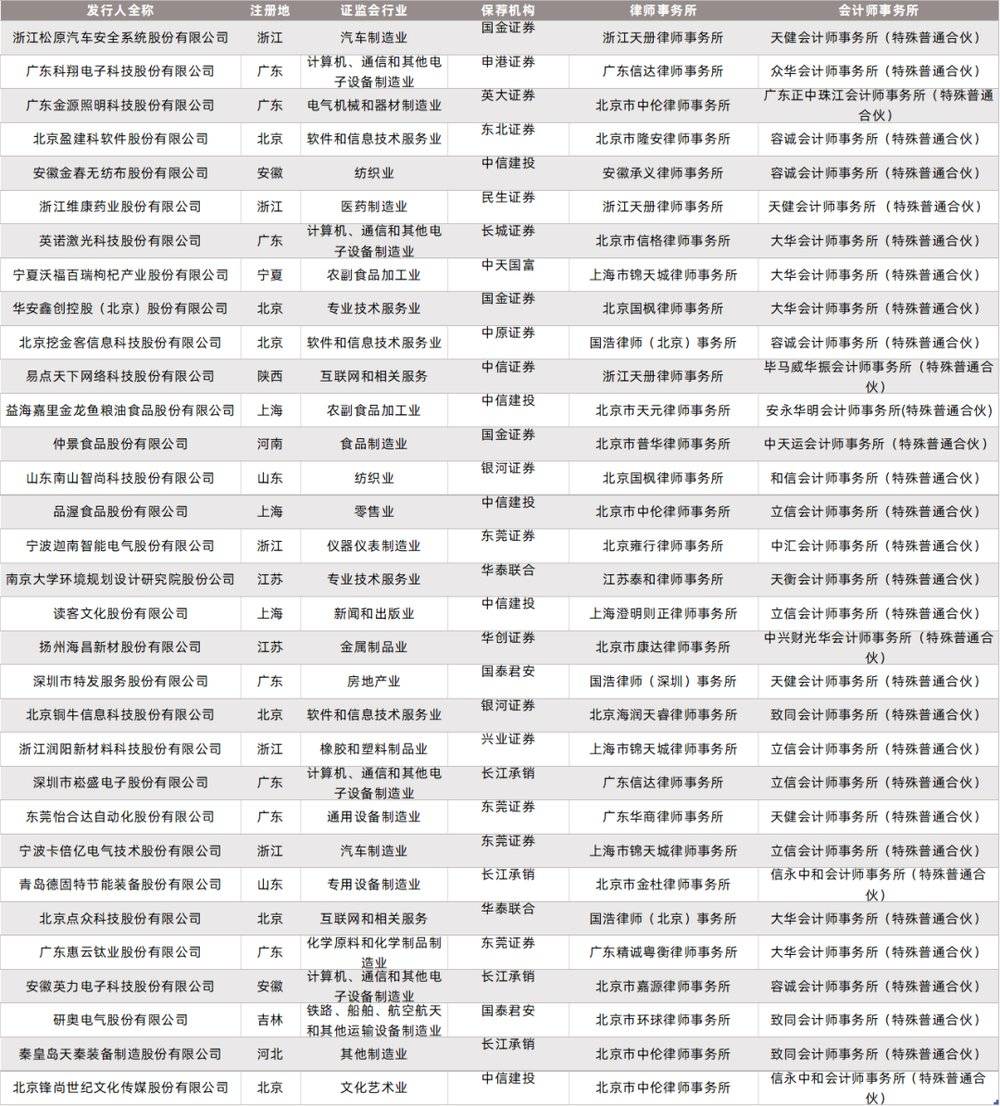 以下为创业板注册制首批受理的IPO企业名单及信息