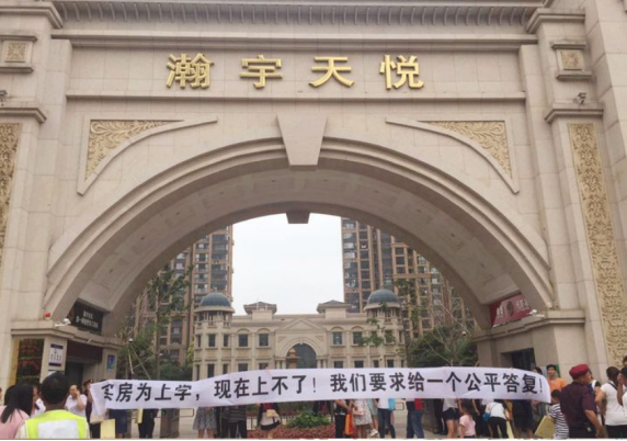 图3:瀚宇天悦三期学棠业主拉横幅维权