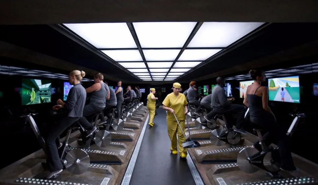 那么其实我觉得在当代更合适的一个模型,可能是已经成为经典的英国迷你剧《黑镜》,它在第一季的第二集当中所展示的。就是在一个大楼里面,所有人的每天的劳动就是跑步给这个大楼供电,同时也赚取他消费的点数,维持他基本的生活。在疫情期间,我们每个人宅在家里,可能我们的娱乐活动跟《黑镜》里边的人们差不多,就是看电视,四周布满了屏幕,我看到的东西,实际上就是和我的生活边界已经非常模糊了。被看的人成为这个体制制造出来的商品,你所输出的观点还是这个体制灌输给你的观点。