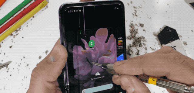 作为首轮评测媒体之一的 The Verge,就因为手机铰链进入杂质(灰尘或沙粒),影响铰链齿轮工作,继而发生连锁效应破坏屏幕。