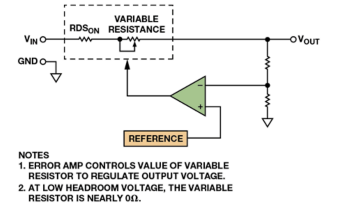 早期的LDO设计提供大约1.3 V的压差,这意味着对于5 V的输入电压,器件进行调节可实现的最大输出仅为3.7 V左右。然而,在当今更复杂的设计技术和晶圆制造工艺条件下,“低”大致定义为<100mV到300mV左右。