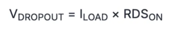 压差是指在输入电压进一步下降,导致LDO不再能进行调节时的输入至输出电压的差值。在此压差条件下,通路元件工作于线性区,类似于一个电阻,其阻值等于漏极到源极的导通电阻RDS(ON)。如今LDO稳压器通常使用PMOS或NMOS FET作为通路元件,依据负载条件,可实现30mV~500mV压差。压差公式为: