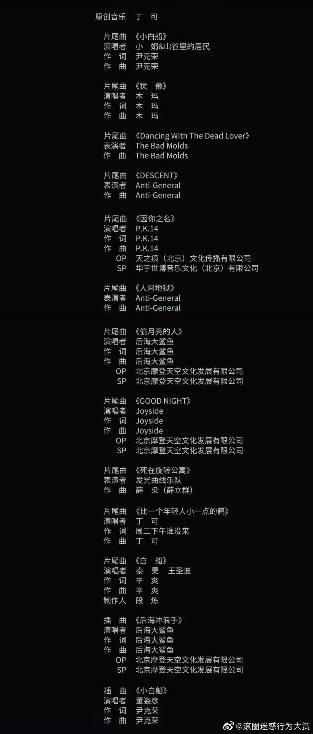 在《隐秘的角落》里,每一集都有一首专属的片尾曲,表达那一集的情绪,看看这些歌名——“Dancing With The Dead Lover”、《人间地狱》《死在旋转公寓》……人间阴乐名副其实。