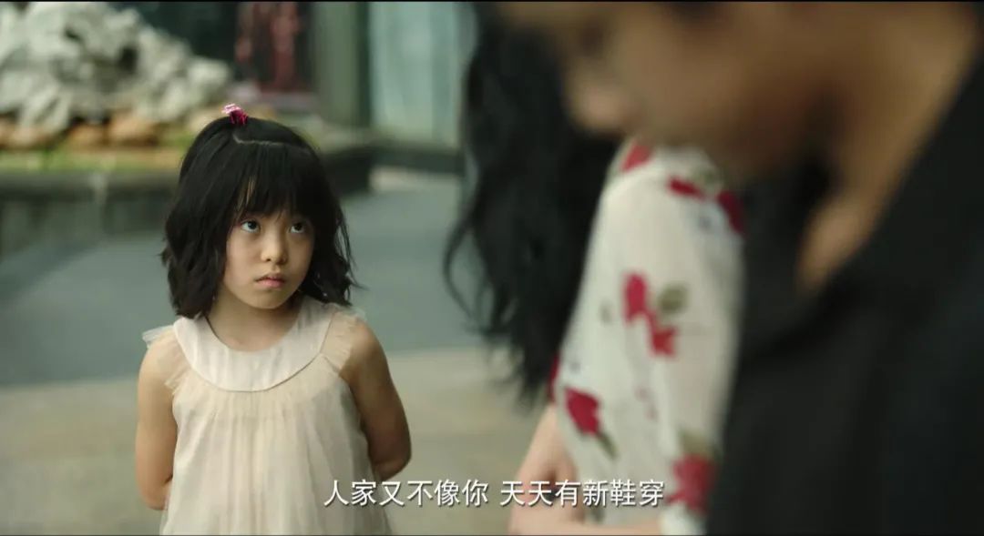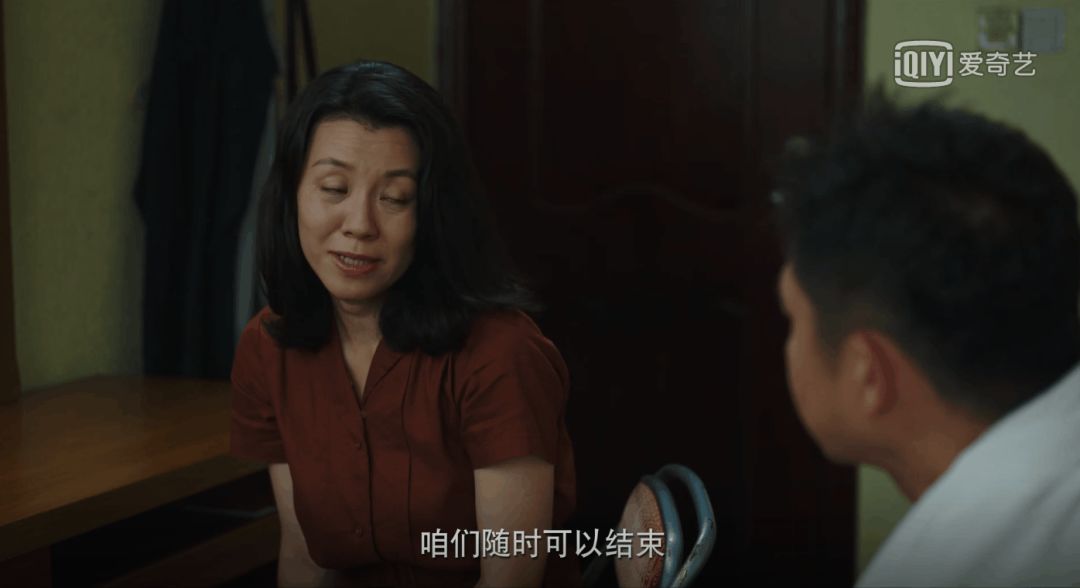 后来在办公室,另外两个同事在聊天,她自己一个人在吃饭,同事一句无心的“孤儿寡母”,也立刻让她拉下了脸,让气氛瞬间凝固。