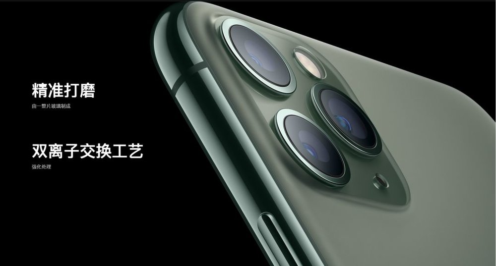 同时,iPhone 11 Pro 镜头部分的玻璃与后盖其它区域的处理工艺又做出了区别,镜头部分是抛光亮面,而其它区域则是磨砂面(iPhone 11 和 iPhone 11 Pro 正相反)。